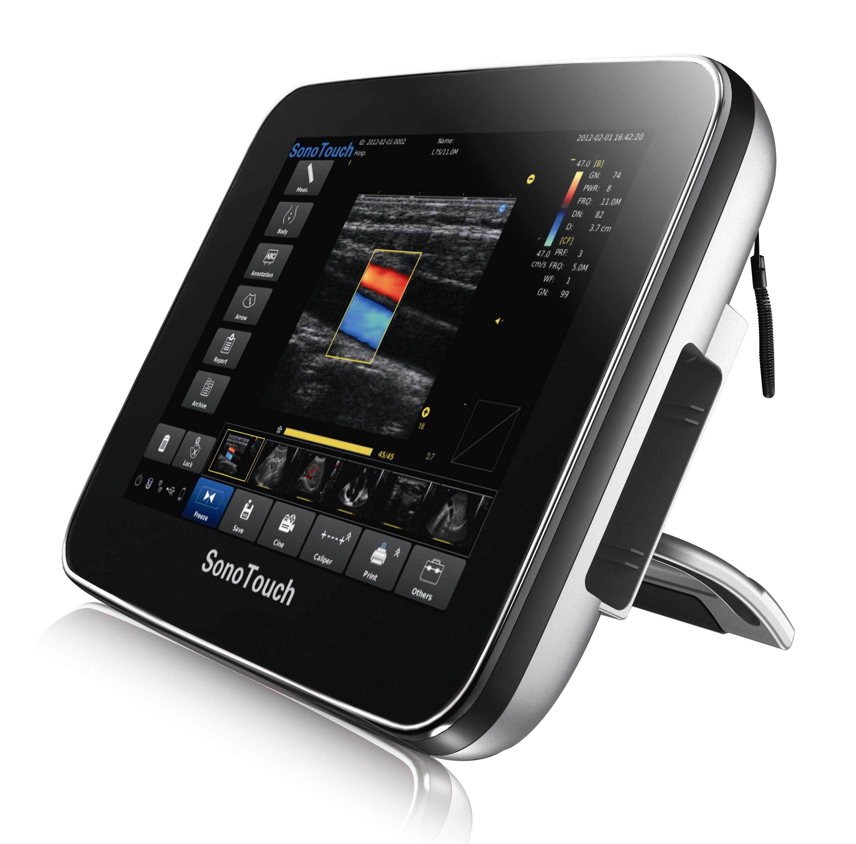 Ultrasonido portatil color Doppler con pantalla LED de 10” y pantalla táctil. Unidad multi-uso: Ob/Gin, Vascular, Pequeñas Partes y Cardiaco con imagen digital. Esta unidad puede ser transportada facilmente a cualquier lugar.
